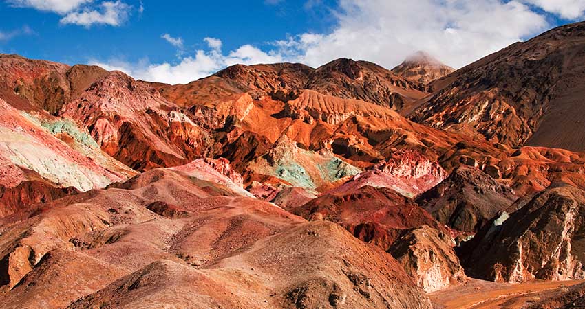 마치 물감을 뿌려놓은듯한 형상. 흙속의 각기 다른 금속성분의 화학작용으로 다양한 색이 나타나게됨. 김암괴석의 모양의 끝없이 펼쳐지는 장관.